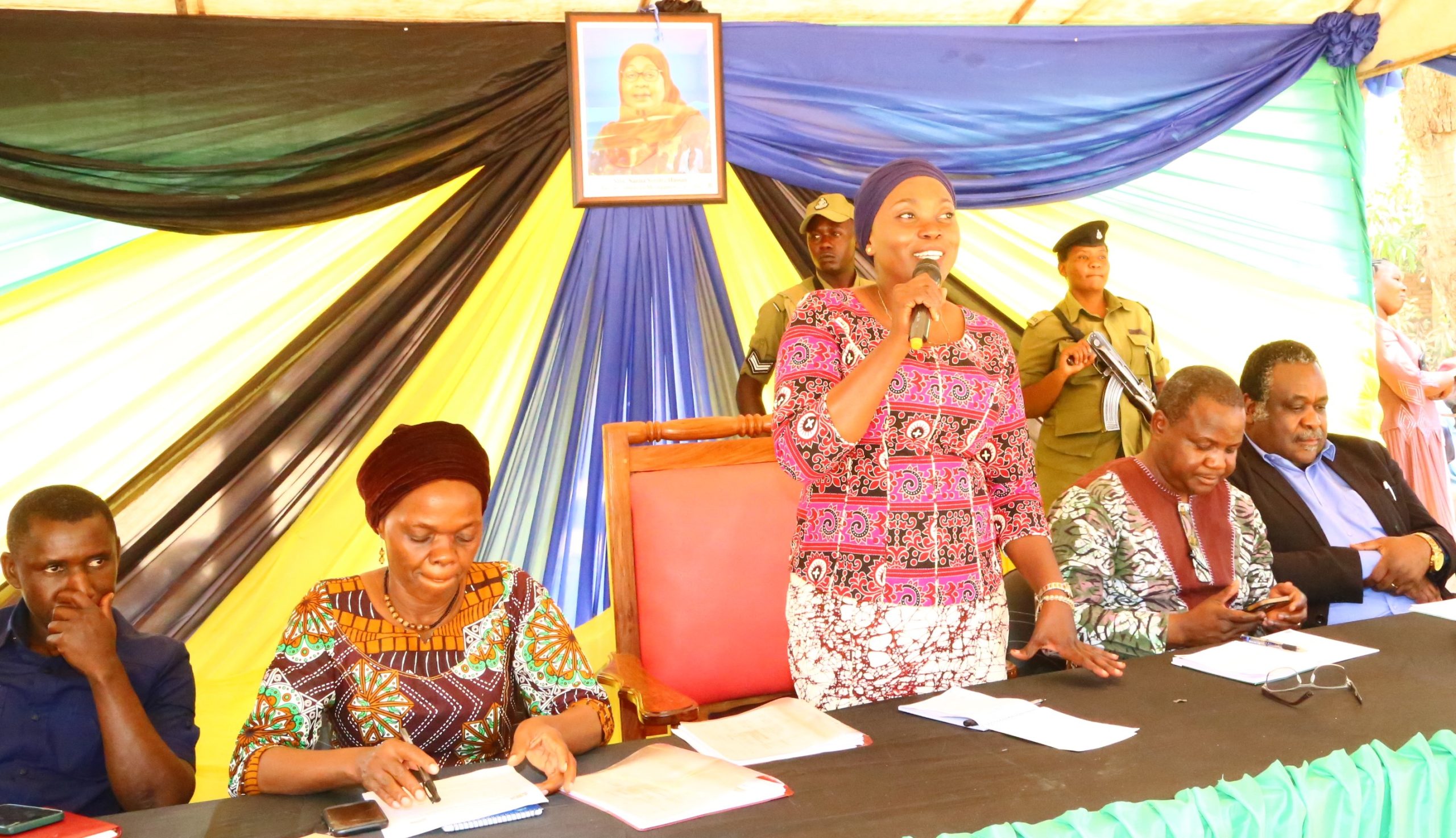 Makamu Mwenyekiti wa kamati ya kudumu ya Bunge ya Masuala ya UKIMWI Mhe. Dkt Alice Kaijage ,akizungumza na wanufaidika wa Mradi wa Timiza malengo (hawaonekeni katika picha) mara baada ya kupokea taarifa ya utekelezaji wa Mradi huo unaoratibiwa na TACAIDS kwa ufadhili wa global fund wakati wa ziara ya kamati hiyo tarehe 3Septemba,2022 Mkoani Morogoro aliyekaa kulia kwake ni Mhe. Hanji Godigodi Mkuu Wilaya ya Kilombero, akifuatiwa na Bw. Kassim Nakapala Mwenyekiti wa Halimashauri ya Ifakara na kushoto kwake ni Bw. Kaspar Mmuya Naibu katibu Mkuu Ofisi ya Waziri Mkuu Sera, Bunge na Uratibu akifuatiwa na Dkt.Leonard Maboko Mkurugenzi Mtendaji wa TACAIDS.