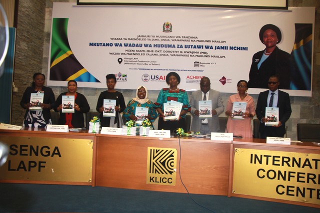 Wadau mbalimbali wakiwa wameshikilia muongozo huo mara baada ya kuzinduliwa.