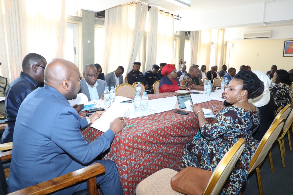 Makamu Mwenyekiti wa Kamati ya Kudumu ya Bunge ya Mambo ya Nje, Ulinzi na Usalama, Vicent Mbogo (kushoto meza kuu), akimsikiliza Katibu wa Kamati hiyo Omari Magwiza, akizungumza na Wajumbe wa Kamati hiyo pamoja na Watendaji Wakuu wa Wizara ya Mambo ya Ndani ya Nchi, katika Kikao cha Kamati hiyo kilichofanyika, Bungeni jijini Dodoma