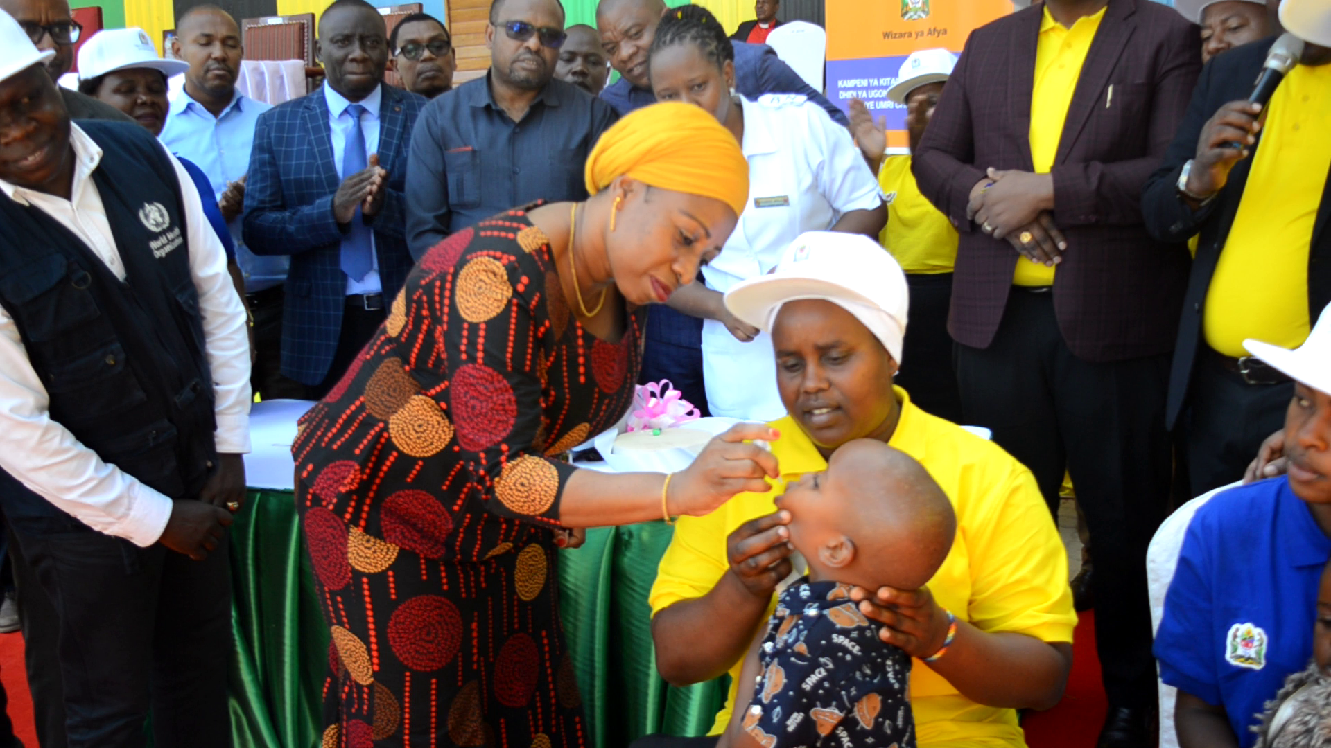 Waziri wa Afya Ummy Mwalimu akishiriki katika kampeni ya utoaji wa chanjo ya polio ya matone kwa watoto chini ya umri wa miaka mitano ,Kampeni hiyo imefanyika nchini kuanzia Septemba Mosi hadi Septemba nne mwaka huu,Mkoa wa Ruvuma ni miongoni mwa mikoa inayofanya vizuri kwen ye utekelezaji wa chanjo mbalimbali zikiwemo UVIKO NA Polio