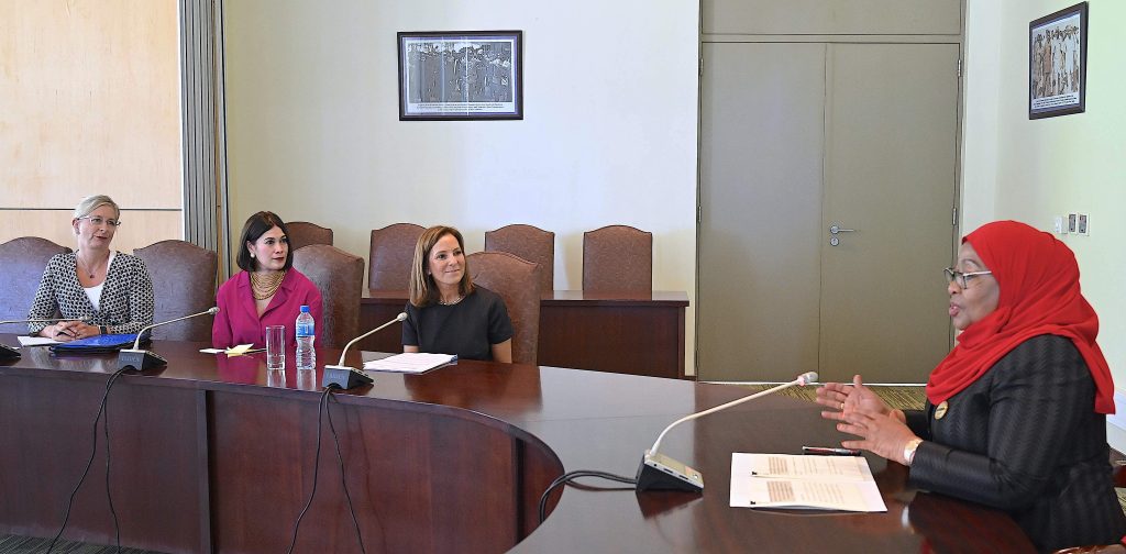 Rais wa Jamhuri ya Muungano wa Tanzania Mhe. Samia Suluhu Hassan akizungumza na Rais wa Mahakama ya Umoja wa Mataifa (UN International Residual Mechanism for Criminal Tribunals-(IMRCT) Craciela Gatti Santana aliyeambatana na Ujumbe wake Ikulu Jijini Dar es Salaam