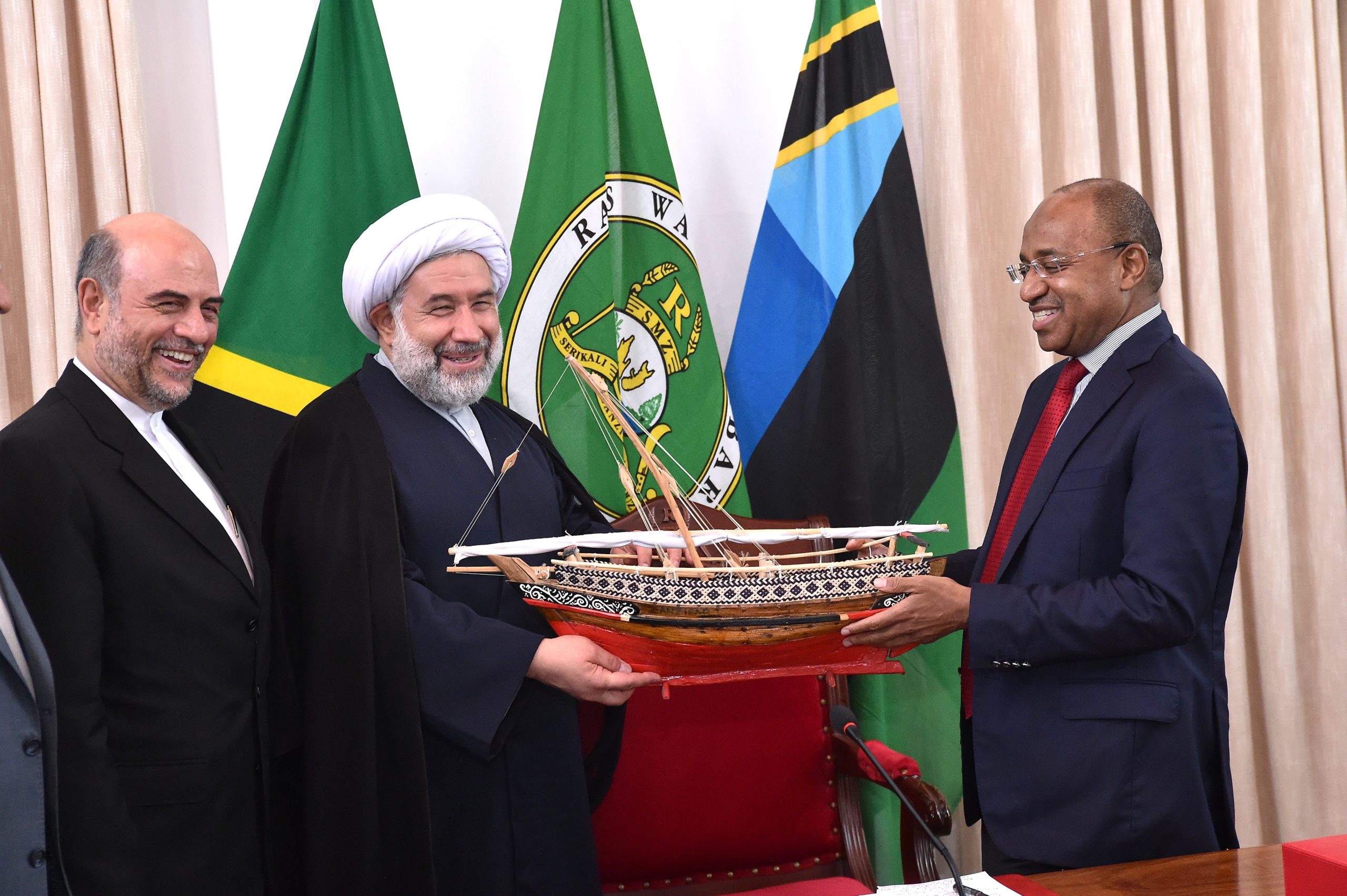 RAIS wa Zanzibar na Mwenyekiti wa Baraza la Mapinduzi Mhe.Dk.Hussein Ali Mwinyi akiagana na Balozi wa Iran Nchini Tanzania Mhe. Hossein Alvandi Bahineh, baada ya kumaliza mazungumzo na Ujumbe wa Chuo Kikuu cha Kimataifa cha Al Mustafa kutoka Nchini Iran, mazungumzo hayo yaliyofanyika katika ukumbi wa Ikulu Jijini Zanzibar leo 10-9-2022.( na Ikulu)