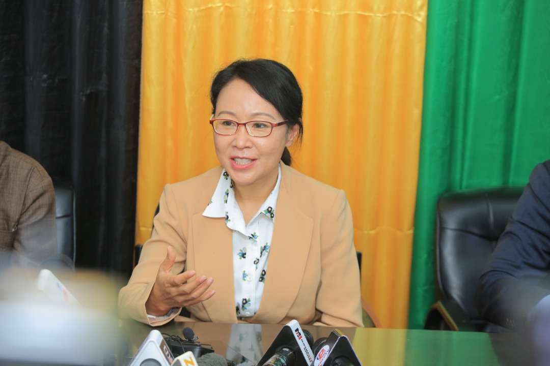 Balozi wa China nchini Tanzania, Chen Mingjian akizungumza na waandishi wa habari (hawapo pichani) mara baada ya kuingia makubaliano ya ushirikiano na Serikali ya Tanzania katika Sekta ya Takwimu.