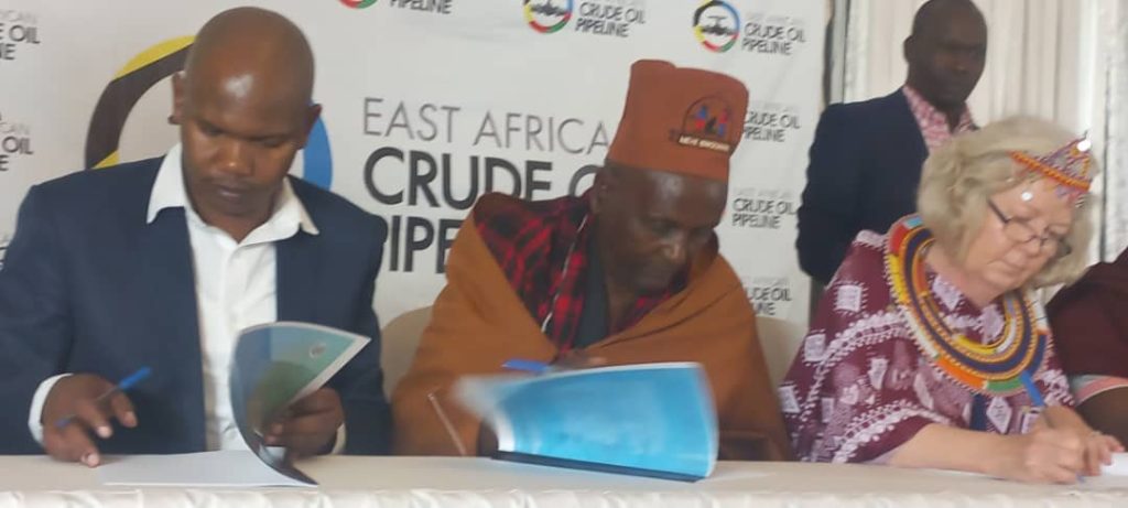 Viongozi hao wamesaini makubaliano na kampuni ya ujenzi wa bomba la mafuta ya EACOP Tanzania hafla iliyofanyika Mount Meru hoteli na kuhudhuriwa na viongozi wa serikali na mashirika yasiyo ya kiserikali ambayo yanafanyakazi na jamii hizo.