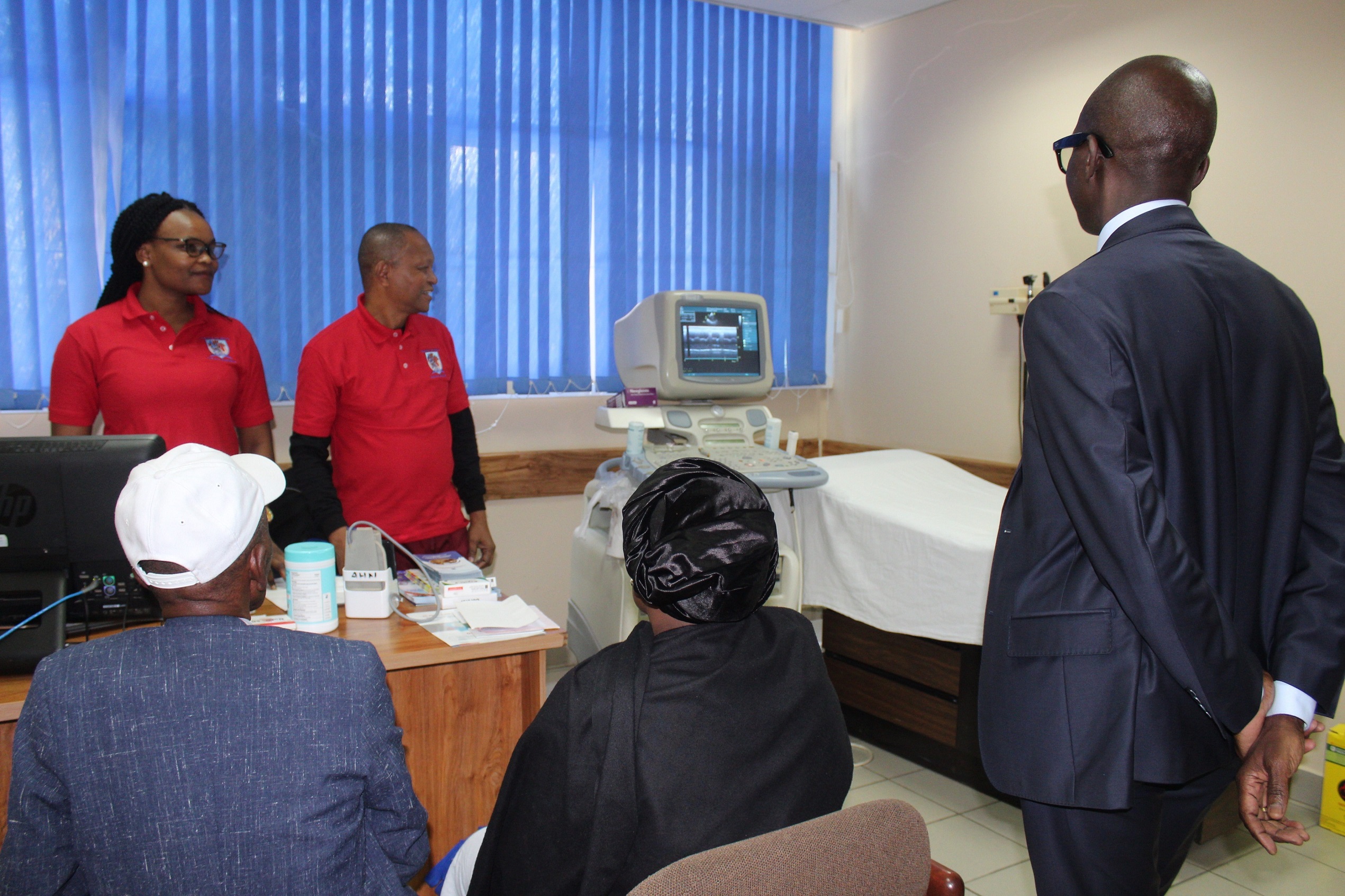 Mkurugenzi Mtendaji wa Taasisi ya Moyo Jakaya Kikwete (JKCI) Prof. Mohamed Janabi akitazama kipimo cha kuangalia jinsi moyo unavyofanya kazi (Echocardiography) ambacho alipimwa mwananchi aliyefika Arusha Lutheran Medical Centre (ALMC) kwa ajili ya uchunguzi na matibabu ya moyo. Katika kuadhimisha siku ya moyo duniani leo tarehe 29/09/2022 wataalamu wa JKCI kwa kushirikiana na wenzao wa ALMC wanafanya kambi maalum ya siku tano ya uchunguzi na matibabu ya magonjwa ya moyo kwa wakazi wa mkoa wa Arusha na mikoa jirani.