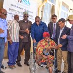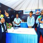 Waziri wa Nchi Ofisi ya Makamu wa Rais Muungano na Mazingira Dkt. Suleiman Jafo na Mkurugenzi wa Halmashauri ya Wilaya ya Geita Bi. Zahra Michuzi wakifurahia jambo pamoja na Maofisa wa Benki Kuu ya Tanzania BoT mara baada ya kupanda katika viwanja vya EPZA Bombambili mjini Geita wakati alipotembelea kwenye maonesho hayo ya 5 ya teknolojia ya madini yanayofanyika mkoani humo.