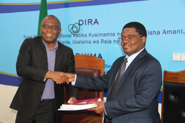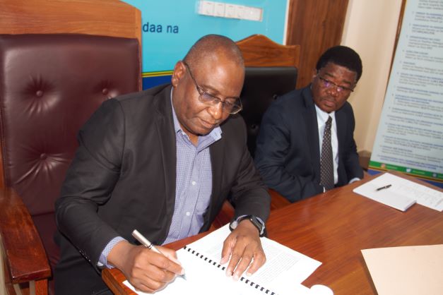 Katibu Mkuu wa Wizara ya Mambo ya Ndani ya Nchi,Christopher Kadio akisaini nyaraka za makabidhiano wakati wa hafla ya kumkabidhi ofisi Naibu Katibu Mkuu wa Wizara hiyo Dkt. Maduhu Kazi baada ya kustaafu utumishi wa umma. Makabidhiano hayo yamefanyika Makao Makuu ya Wizara hiyo jijini Dodoma na kuhudhuriwa na Viongozi mbalimbali waliopo katika Wizara hiyo. (Picha na Jeshi la Polisi)