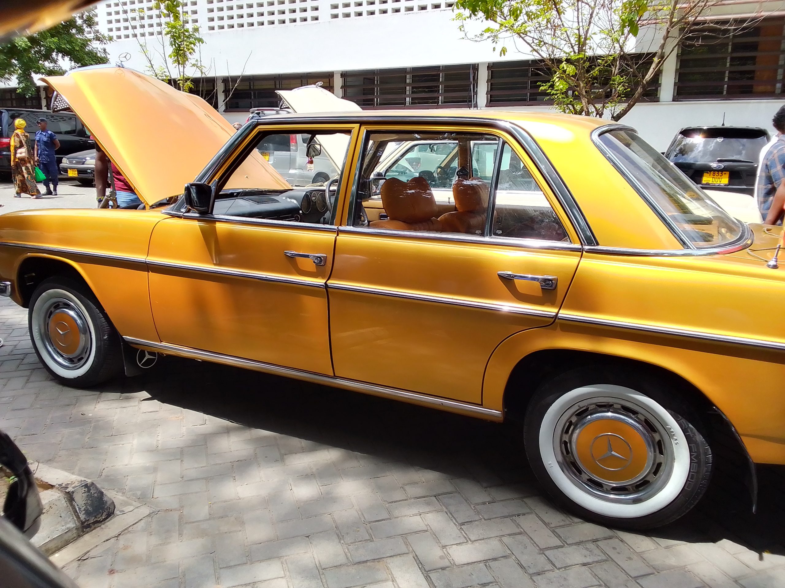 Wadau wa magari ya zamani (Oldschool ride Tanzania) wakipewa maelezo katika kijiji cha Makumbusho jijini Dar es salaam wakati waliposhirikiana na Makumbusho ya Taifa kwa wamemuenzi Mwl. J.K. Nyerere kupitia msafara wa magari ya zamani yaliyozunguka katika mitaa ya jiji la Dar es Salaam.