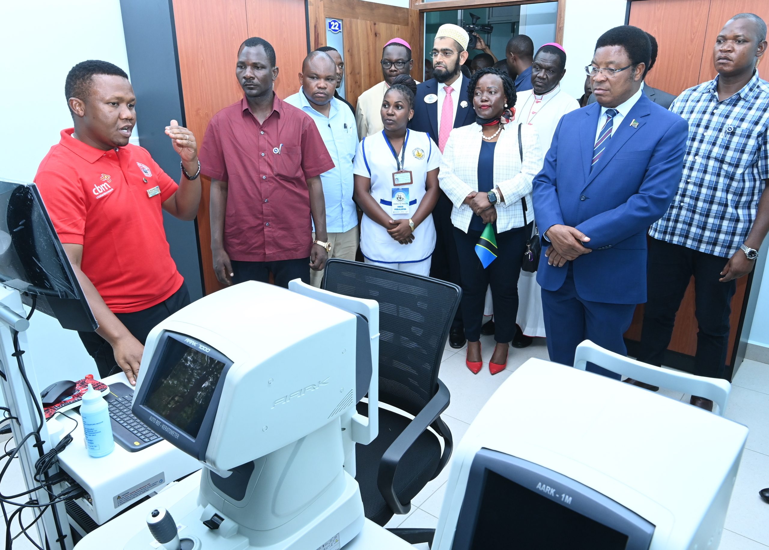 Waziri Mkuu, Kassim Majaliwa akipata maelezo kutoka kwa Dkt. Christopher Mwanansao ambaye ni Mkuu wa Idara ya Macho katika Hospitali ya Rufaa ya Kanda Bugando wakati alipozindua Jengo la Huduma ya Macho katika hospitali hiyo jijini Mwanza, Oktoba 16, 2022. (Picha na Ofisi ya Waziri Mkuu)