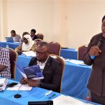 Kaimu Meneja wa TANROADS Mkoa wa Tabora Mhandisi Raphael Mlimaji ( wa kwanza kulia) akiwa na Waziri wa Ujenzi na Uchukuzi Profesa Makame Mbarawa (wa tatu kulia) kwenye ziara maalumu ya kukagua ujenzi za barabara ya Kazilambwa-Chagu yenye urefu wa km 36 inayounganisha Mkoa wa Tabora na Kigoma hivi karibuni .