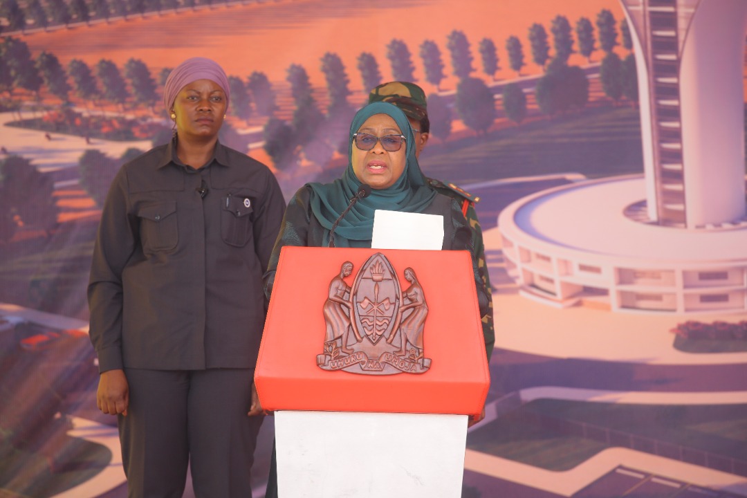 Rais wa Jamhuri ya Muungano wa Tanzania Mhe. Samia Suluhu Hassan akizungumza na viongozi pamoja na Wananchi kabla ya kuweka Jiwe la Msingi Ujenzi wa Kiwanja cha Ndege cha Kimataifa cha Msalato,leo Oktoba 30,2022 jijini Dodoma.