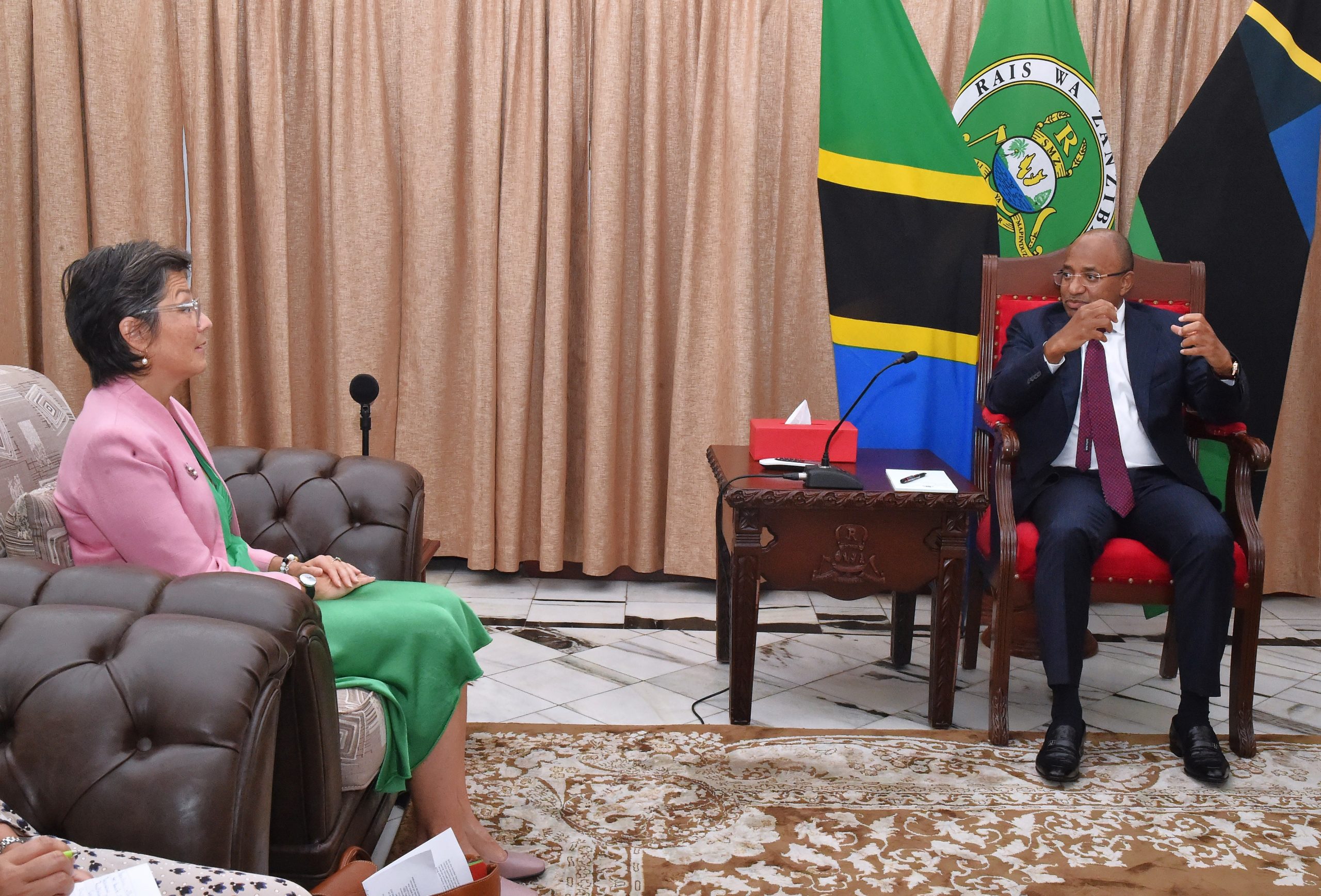 RAIS wa Zanzibar na Mwenyekiti wa Baraza la Mapinduzi Mhe.Dk.Hussein Ali Mwinyi akisalimiana na Balozi wa Sweden Nchini Tanzania Mhe.Charlotta Ozaki Macias alipofika Ikulu Jijini Zanzibar kwa mafungumzo yaliofanyika katika ukumbi wa Ikulu leo 3-11-2022
