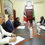 Mkuu wa Wilaya ya Kigoma, Mhe. Ester Mahawe akimkaribisha Naibu Waziri, Ofisi ya Rais, Menejimenti ya Utumishi wa Umma na Utawala Bora, Mhe. Deogratius Ndejembi kuzungumza na wananchi wa Kata ya Rusimbi, Mtaa wa Kawawa na Taifa mkoani Kigoma wakati wa ziara ya kikazi ya Naibu Waziri huyo yenye lengo la kukagua utekelezaji wa Mpango wa Kunusuru Kaya Maskini kwenye Halmashauri ya Wilaya ya Kigoma.