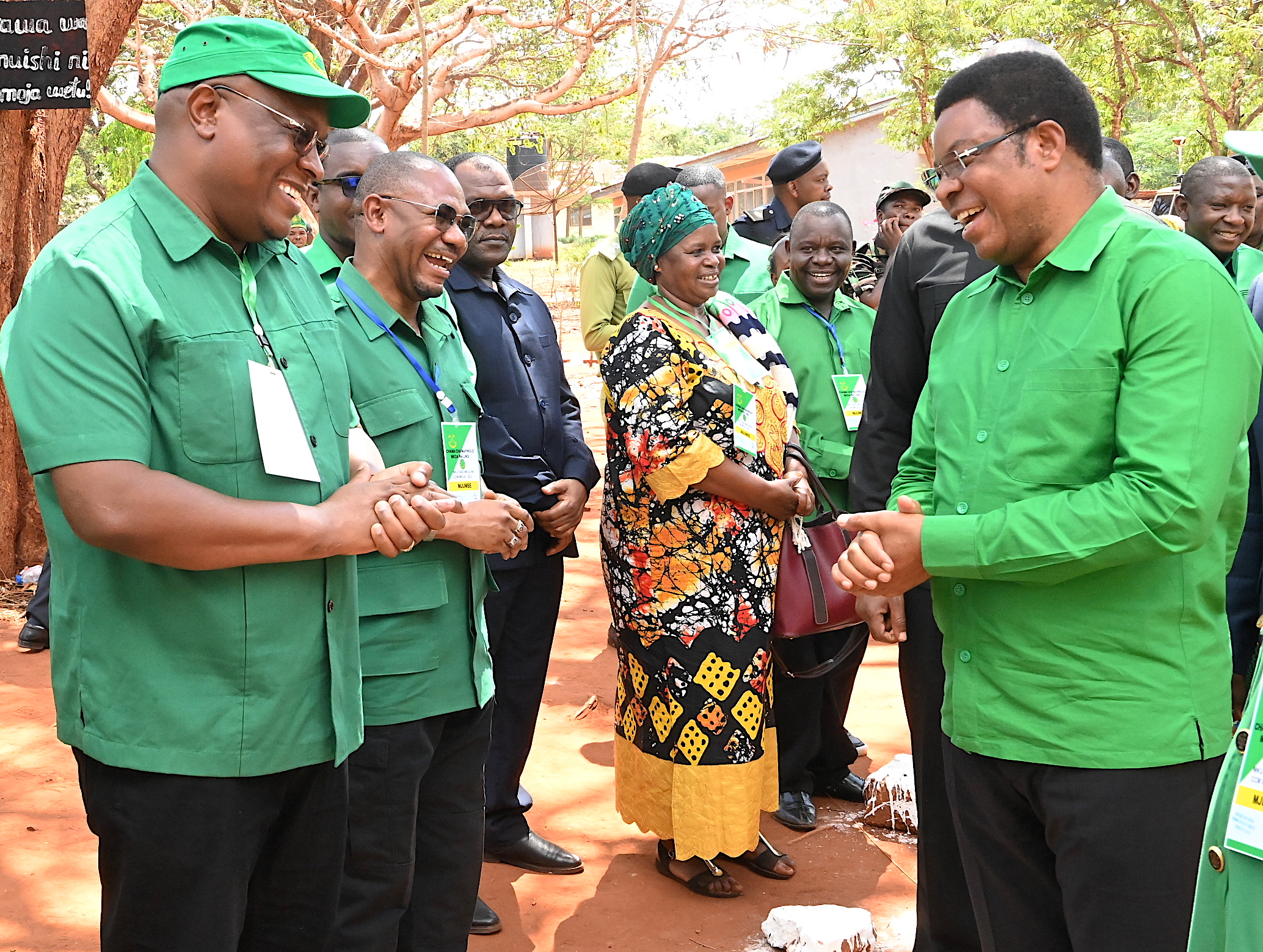 Waziri Mkuu na Mjumbe wa Kamati Kuu ya CCM Taifa , Kassim Majaliwa akiwapungia wajumbe wa Mkutano Mkuu wa CCM wa Uchaguzi Mkoa wa Lindi wakati alipowasili kwenye ukumbi wa Chuo cha Ualimu Nachingwea kushiriki katika mkutano huo, Februari 20, 2022. (Picha na Ofisi ya Waziri Mkuu)