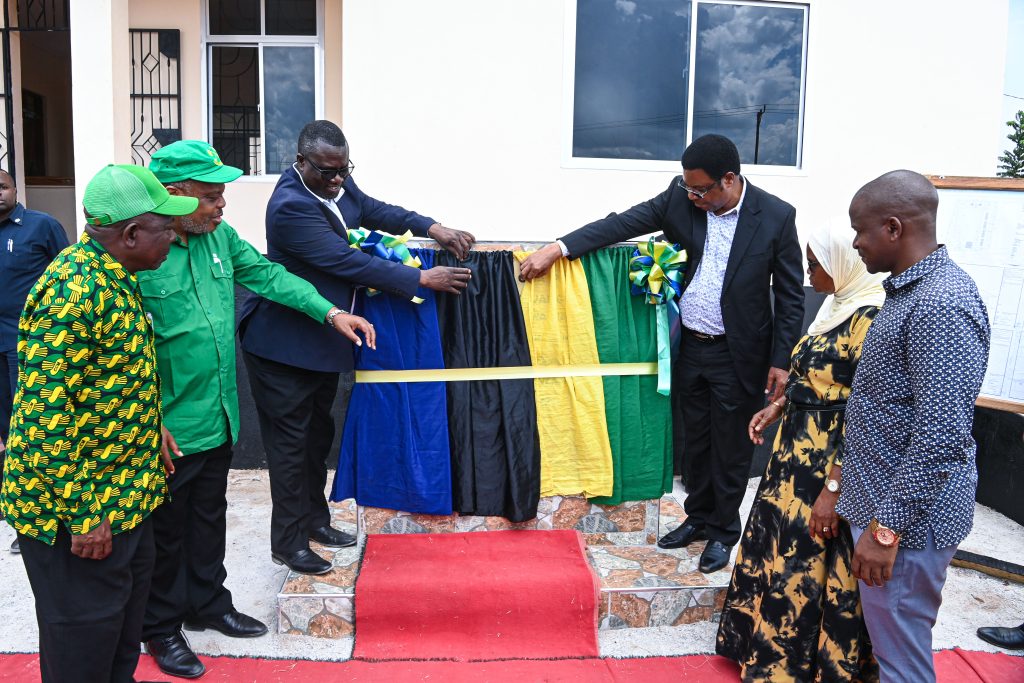 Waziri Mkuu Kassim Majaliwa (wa kwanza kulia) akifungua kitambaa kuashirikia uzinduzi wa Kituo Kikuu cha Polisi cha Wilaya ya Ruangwa, kilichopo Ruangwa Mkoa wa Lindi, Disemba 31, 2022. kushoto ni Naibu Waziri Wizara ya Mambo ya Ndani ya Nchi Jumanne Sagini, wa pili kulia ni Mkuu wa Mkoa wa Lindi Zainab Telack, Mkuu wa Wilaya ya Lindi Hassan Ngoma (kulia), Wengine ni Mwenyekiti wa Chama cha Mapinduzi (CCM) Mkoa wa Lindi Hassan Jarufu (wa pili kushoto) na Mwenyekiti wa CCM Wilaya ya Ruangwa Ibrahim Ndoro (kushoto)
