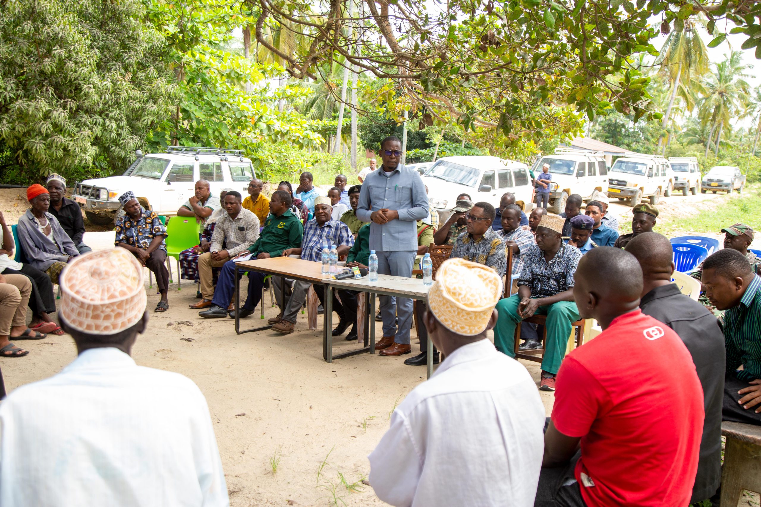 Naibu Waziri wa Habari, Mawasiliano na Teknolojia ya Habari, Mheshimiwa Mhandisi Kundo Andrea Mathew (MB) akiongea pamoja na kujibu maswali katika mikutano ya hadhara na wananchi wa Kata ya Baleni, Kijiji cha Kungwi na Kata ya Mibulani wilayani Mafia wakati akiwa katika ziara yake ya kukagua miradi ya mawasiliano, ubora na upatikanaji wa huduma za mawasiliano, usikivu wa TBC na uhakiki wa Anwani za Makazi juzi Januari 5, 2023