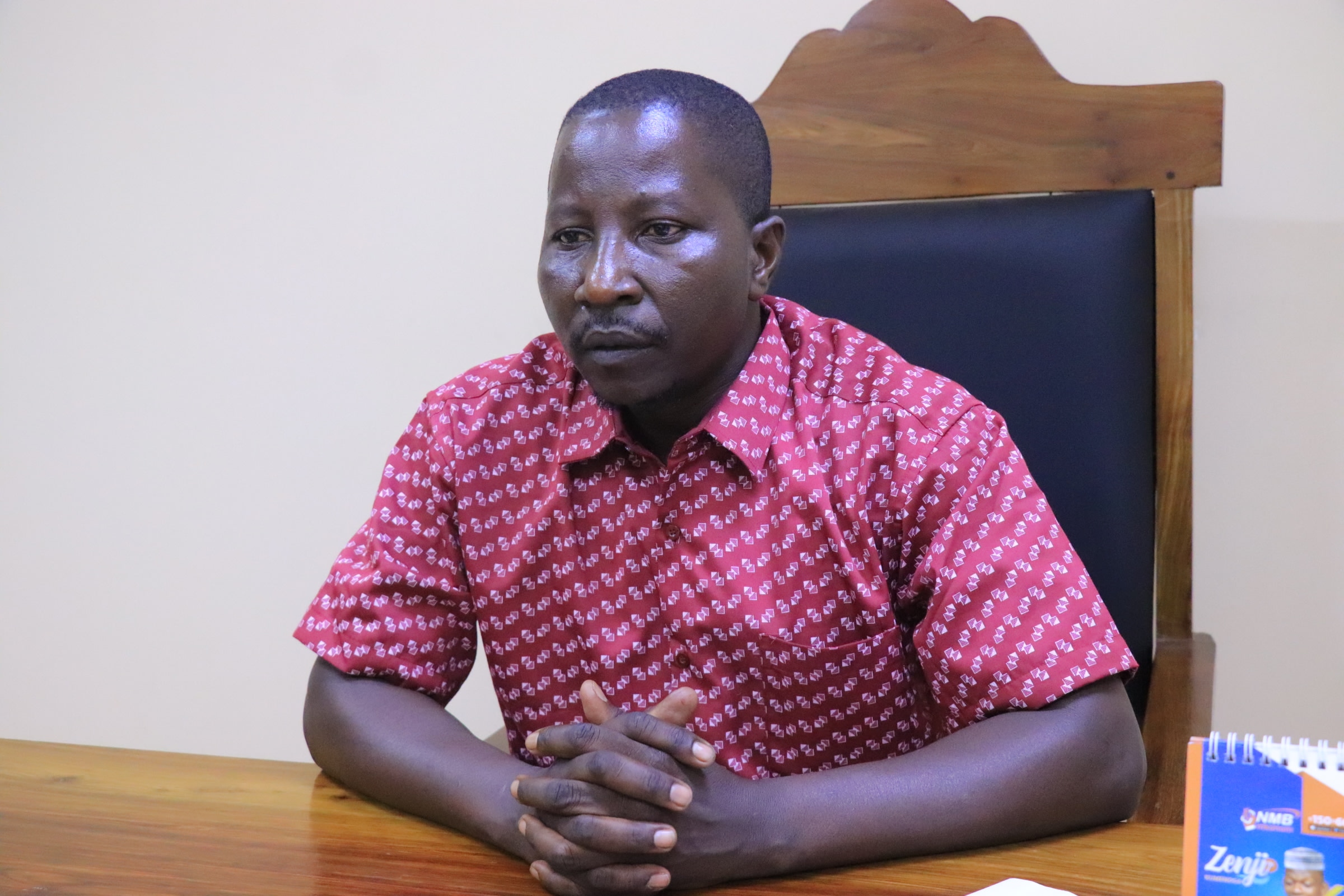 Kaimu mkurugenzi wa Halmashauri ya wilaya ya Uyui mkoani Tabora , Dkt Kija Maige akizungumza na waandishi wa habari ofisini kwake .