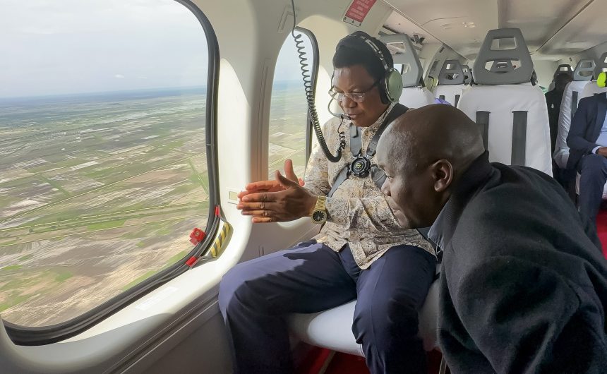 Waziri Mkuu Kassim Majaliwa akipewa maelezo na Mkuu wa Mkoa wa Mbeya Juma Homera, wakati alipofanya ukaguzi wa hali ya hifadhi ya usangu, Ranchi ya Usangu, Ihefu, Madibila, Ubaruku na Kapunga, Januari 17, 2023. Ukaguzi huo unafuatia maamuzi ya Rais Dkt. Samia Suluhu Hassan kufanya marekebisho kwenye tangazo la Serikali namba 28 ambalo limetoa hekta 74,000 kwa wananchi kwa ajili ya shughuli za kilimo na ufugaji endelevu. Kulia ni Waziri wa Ardhi, Nyumba na Maendeleo ya Makazi Dkt. Angelina Mabula. (Picha na Ofisi ya Waziri Mkuu)