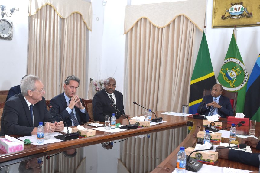 RAIS wa Zanzibar na Mwenyekiti wa Baraza la Mapinduzi Mhe.Dk.Hussein Ali Mwinyi akiwa katika mazungumzo na Ujumbe wa Madaktari Bingwa kutoka Nchini Marekani na Ubeligiji wa Taasisi ya “The International Society for Gynecologic Endoscopy” (kulia kwa Rais) Dr.Michael. Mwasumbi,Dr.Marc .Briere na Kiongozi wa Ujumbe huo Prof.Bruno J.Van Herendael, walipofika Ikulu Jijini Zanzibar kwa mazungumzo yaliyofanyika katika ukumbi wa Ikulu leo 25-1-2023.(Picha Ikulu)