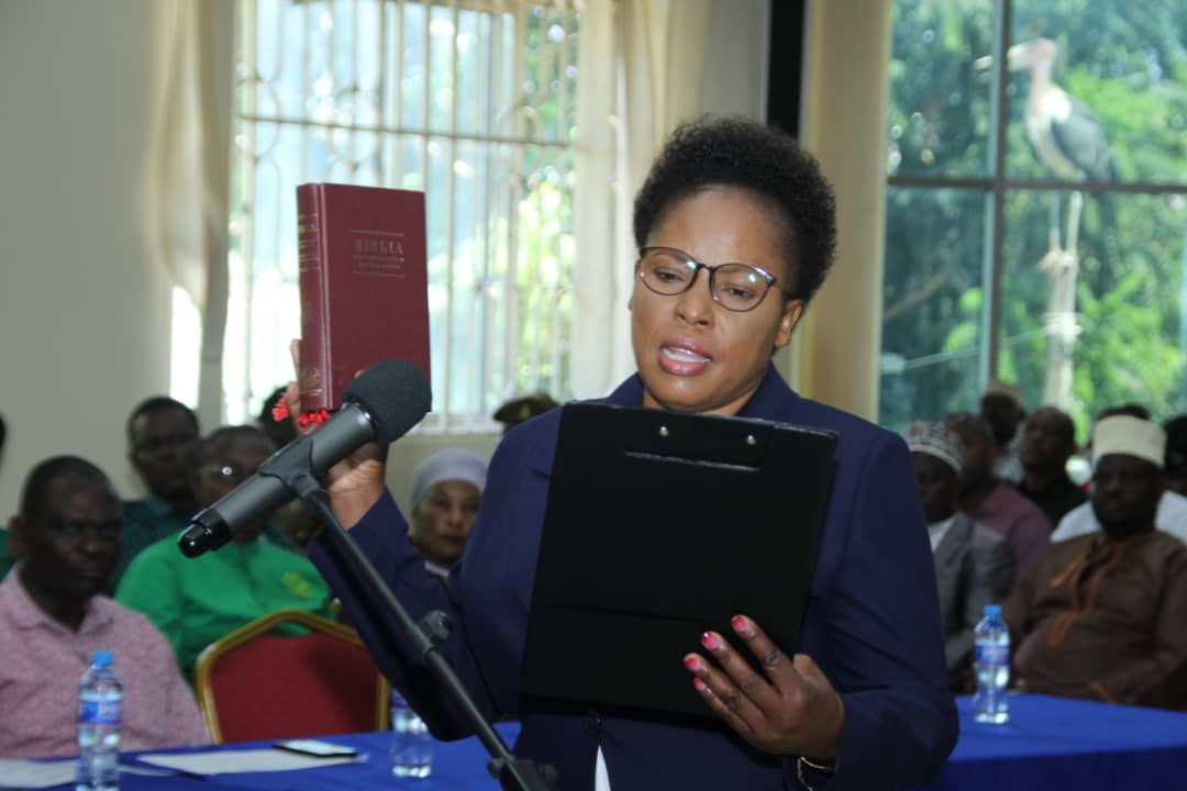 Mkuu wa Wilaya ya Magu Rachel Kasanda akiapa kwaajili ya kuanza kazi