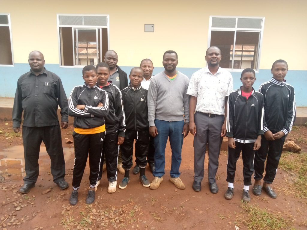 Mkuu wa shule ya Sekondari Makita Halmashauri ya Mji Mbinga Emanuel Mwamasika wa tatu kulia,akiwa na baadhi ya wanafunzi wa kidato cha kwanza na viongozi wa idara ya elimu,mipango na afya waliotembelea shule hiyo mwishoni mwa wiki.