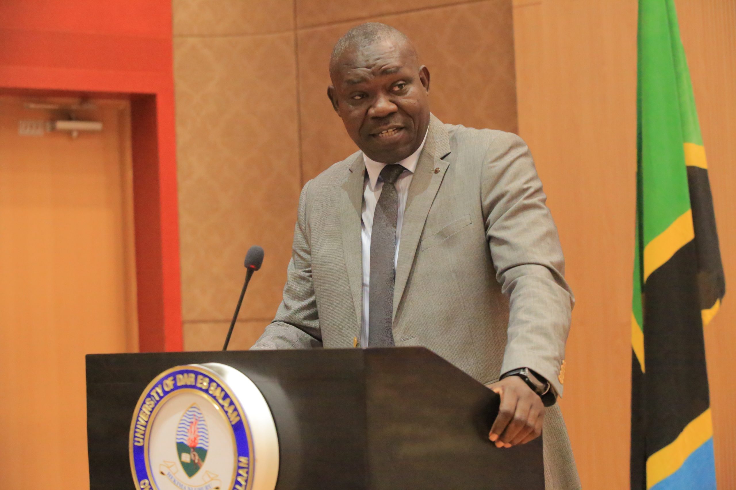 Makamu Mkuu wa Chuo Kikuu cha Dar es Salaam (UDSM) – Taaluma, Prof. Boneventure Rutinwa akizungumza katika Kongamano la ubunifu kwa maendeleo ya nchi za Japan na Tanzania lililofanyika leo Februari 9,2023 Chuo Kikuu cha Cha Dar es Salaam (UDSM) Jijini Dar es Salaam.