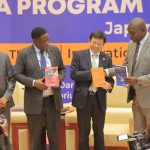 Kaimu Mkuu wa Mkoa wa Shinyanga Dkt. Yahaya Nawanda (kulia) akiwakabidhi cheti viongozi wa wilaya ya Kahama kutokana na kuibuka Washindi wa pili wa kwenye Mashindano ya usafi wa afya na mazingira kwa Hospitali za Wilaya nchini Tanzania. Aliyevaa kilemba ni Mkuu wa wilaya ya Kahama Mhe. Mboni Mhita.