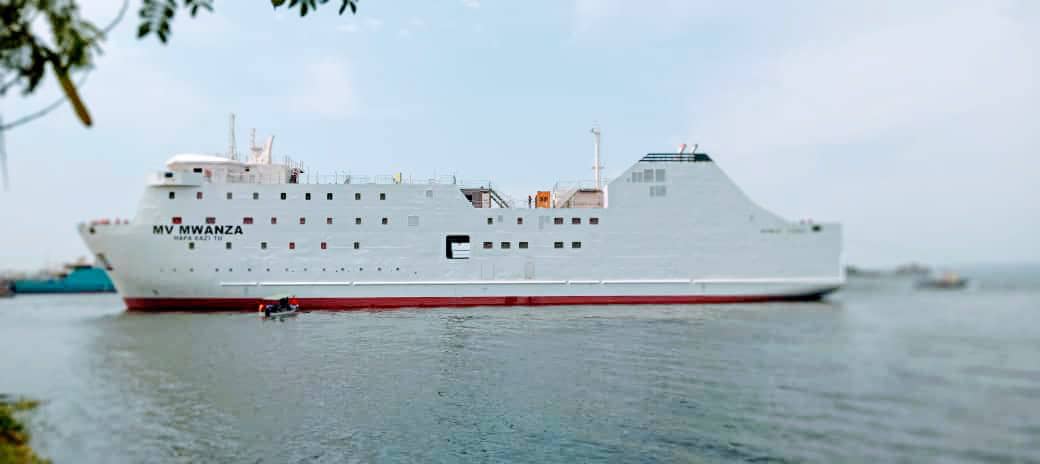 Meli ya Mv Mwanza hapa kazi tu ikiwa tayari imeshashushwa kwenye maji katika Bandari ya Mwanza Kusini kwaajili ya kuendelea na ukamilishwaji