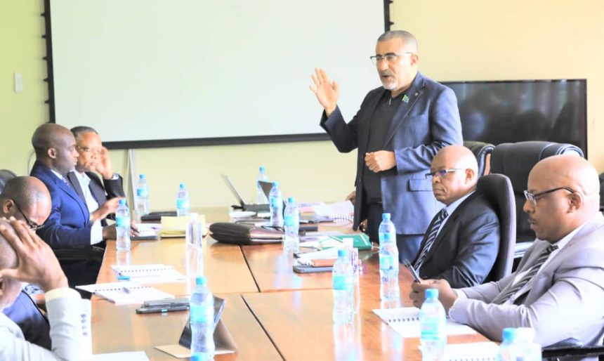 Mwenyekiti wa Kamati ya Kudumu ya Bunge ya Nishati na Madini, Mhe. Dustan Kitandula akiongoza Semina ya kuwajengea uwezo wabunge wa kamati yake iliyofanyika tarehe 10 Februari 2023 katika ukumbi wa Mikutano wa Wizara ya Nishati jijini Dodoma.
