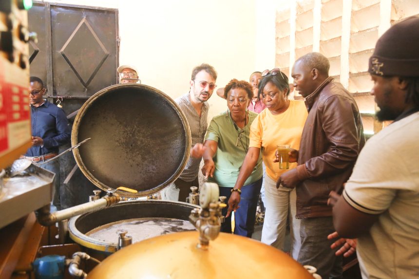 Ujumbe wa Ujumbe wa Mfuko wa GEF mtambo wa uzalishaji wa mafuta ya alizeti zinazotumika kwa na mashudu ya vyakula vya mifugo wakati wa ziara ya ujumbe huo kukagua Mradi wa EBARR unaotekelezwa na kusimamiwa na Ofisi ya Makamu wa Rais wakati wa ziara ya ujumbe huo leo Jumatano (Februari 15, 2023) Wilayani Mpwapwa Mkoani Dodoma.