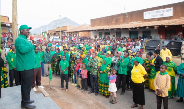 Katibu Mkuu wa Chama Cha Mapinduzi Ndugu Daniel Chongolo akizungumza na wakazi wa kata ya Uhuru mara baada ya kutembelea na kuweka jiwe la msingi wa mradi wa uchumi wa CCM Kata ya Uhuru, Mbulu mkoani Manyara.