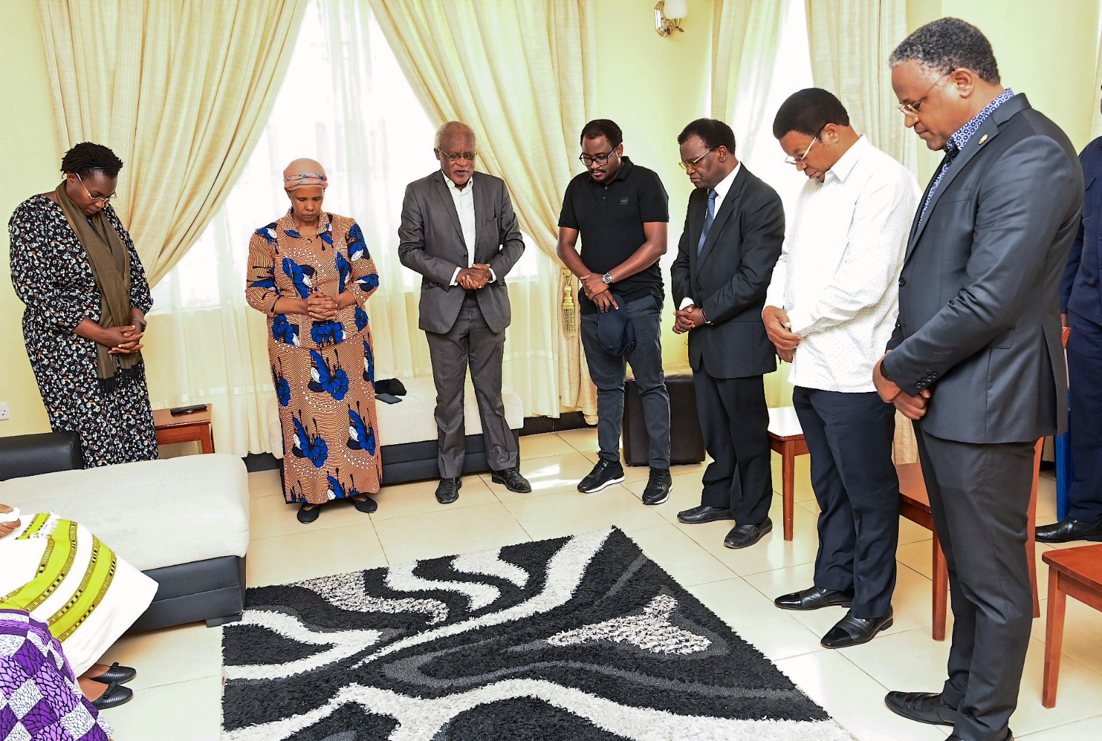 Waziri Mkuu, Kassim Majaliwa akishirika katika sala wakati alipowasili nyumba kwa Katibu Mkuu, Ofisi ya Waziri Mkuu, Dkt. Jim Yonaz (kulia), eneo la Mbezi beach Kilongawima mkoani Dar es salaam kuhani msiba wa Yonaz Enock Yonaz ambaye ni mdogo wa Dkt. Yonaz. Wa tatu kulia ni baba wa marehemu, Enock Yonaz.(Picha na Ofisi ya Waziri Mkuu)