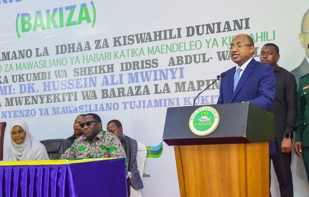 RAIS wa Zanzibar na Mwenyekiti wa Baraza la Mapinduzi Mhe.Dk.Hussein Ali Mwinyi akihutubia na kulifungua Kongamano la Idhaa za Kiswahili Duniani. Linalofanyika katika ukumbi wa Mikutano wa Sheikh Idrissa Abdulwaki Kikwajuni Wilaya ya Mjini Unguja Jijini Zanzibar.