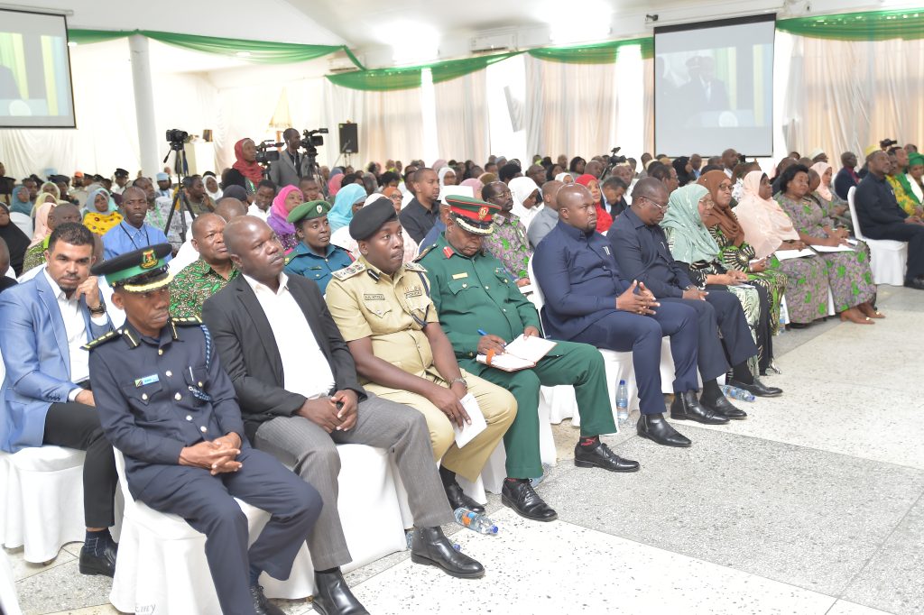 BAADHI ya Wakuu wa Vikosi vya Ulinzi na Usalama Zanzibar na Mawaziri wa SMZ wakimsikiliza Rais wa Zanzibar na Mwenyekiti wa Baraza la Mapinduzi Mhe.Dk.Hussein Ali Mwinyi (hayupo pichani) akihutubia wakati akilifungua Kongamano la Idhaa za Kiswahili Duniani linalofanyika katika ukumbi wa mikutano wa Sheikh Idrissa Abdulwakil Kikwajuni Wilaya ya Mjini Unguja Jijini Zanzibar