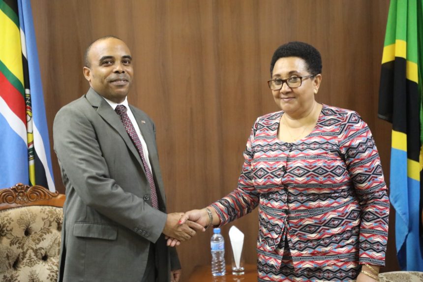 Waziri wa Mambo ya Nje na Ushirikiano wa Afrika Mashariki, Mhe. Dkt. Stergomena Tax (Mb). akisalimiana na Balozi wa Jamhuri ya Cuba nchini, Mhe. Yordenis Despaigne Vera yaliyofanyika katika Ofisi Ndogo za Wizara Jijini Dar es Salaam.