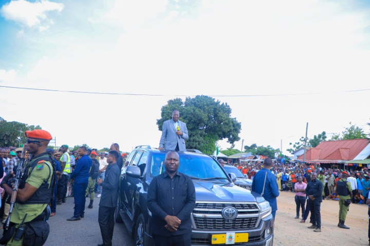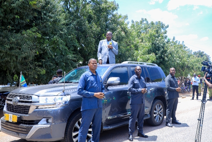 Makamu wa Rais wa Jamhuri ya Muungano wa Tanzania Mheshimiwa Dkt. Philip Mpango akizungumza na wananchi wa Wilaya ya Kwimba katika eneo la Hungumalwa wakati akiwa ziarani mkoani Mwanza leo tarehe 11 Aprili 2023.