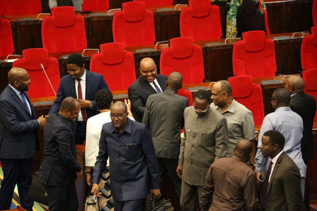 Waziri wa Nchi Ofisi ya Makamu wa Rais (Muungano na Mazingira) Mhe. Dkt. Selemani Jafo akipongezwa na wabunge mara baada ya kupitishwa kwa Bajeti ya Ofisi ya Makamu wa Rais kwa mwaka wa Fedha 2023/2024 leo Aprili 24, 2023.
