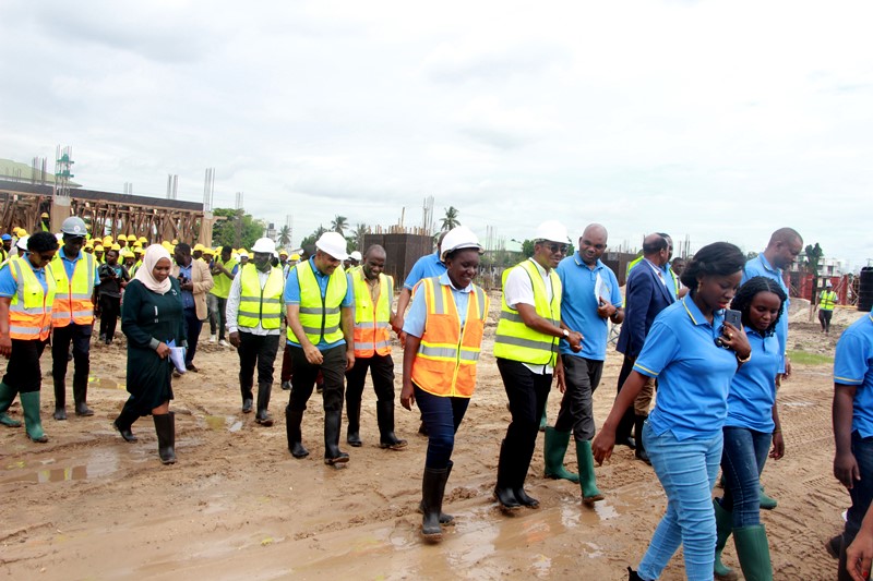 Baadhi ya wajumbe wa Kamati ya Bunge ya Kudumu ya Uwekezaji wa Mitaji ya Umma wakiendelea na ukaguzi wa mradi wa Samia Husing Scheme.