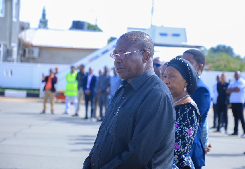 Makamu wa Rais wa Jamhuri ya Muungano wa Tanzania Mheshimiwa Dkt. Philip Mpango na Mkewe Mama Mbonimpaye Mpango wakiwa Uwanja wa Ndege wa Dodoma leo tarehe 30 Aprili 2023 wakisindikiza mwili wa aliyekuwa Dobi Ofisi ya Makamu wa Rais Marehemu Jackson Mwakyelu aliyefariki kwa ajali ya gari usiku wa tarehe 28 Aprili 2023 unaosafirishwa kuelekea Kyela mkoani Mbeya kwaajili ya mazishi.