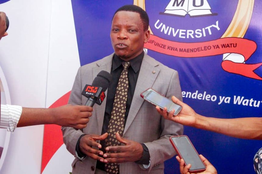 Kaimu Makamu Mkuu wa Chuo Kikuu Mzumbe, Prof.William Mwegoha wakati akizungumza na waandishi wa habari katika banda la chuo hicho katika kilele cha Maadhimisho ya maonesho ya wiki ya ubunifu 2023 yaliyoandaliwa na Wizara ya Elimu,Sayansi na Teknolojia katika uwanja wa Jamhuri Jijini Dodoma.