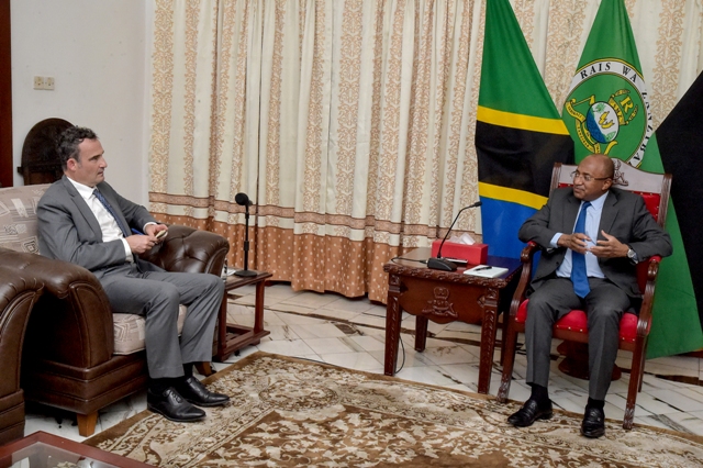 RAIS wa Zanzibar na Mwenyekiti wa Baraza la Mapinduzi Mhe.Dk.Hussein Ali Mwinyi akizungumza na mgeni wake Balozi wa Canada Nchini Tanzania Kyle Nunas, alipofika Ikulu Jijini Zanzibar kwa mazungumzo yaliyofanyika katika ukumbi wa Ikulu leo 3-5-2023.(Picha na Ikulu)