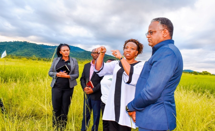 Mtendaji Mkuu wa ASA Dkt. Sophia Kashenge akimuonesha Katibu Mkuu Ofisi ya Waziri Mkuu (Sera, Bunge na Uratibu) Dkt. Jim Yonazi eneo la shamba la mbegu Msimba linalomilikiwa na Taasisi hiyo pamoja na kisima cha maji katika eneo hilo (hakipo pichani) katika Wilaya ya Kilosa mkoani Morogoro.