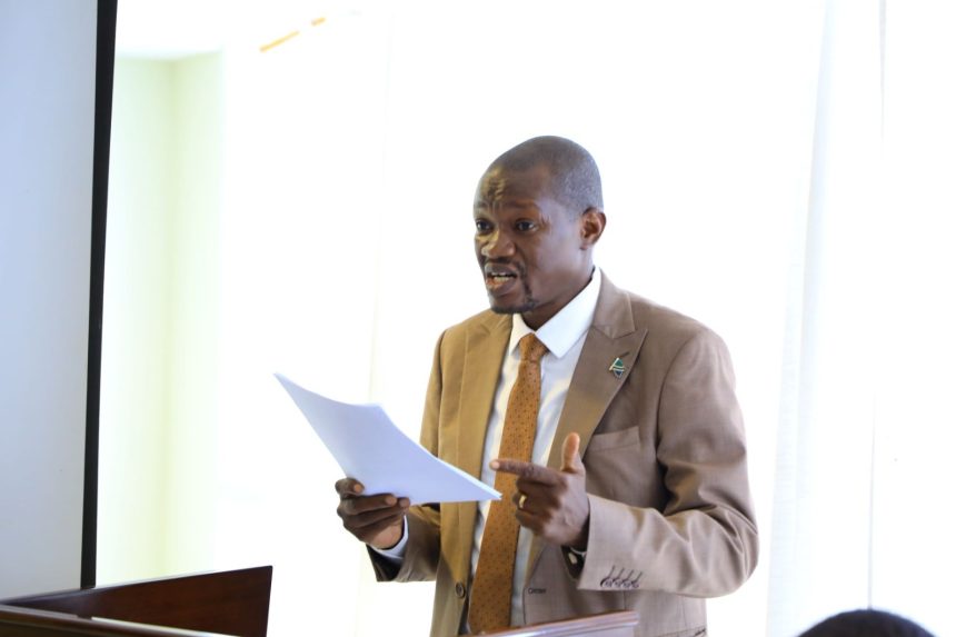 Meneja wa Mamlaka ya Hali ya Hewa Tanzania (TMA) Emmanuel Kidebwana,,akizungumza wakati wa semina ya siku moja kwa ajili ya kujadili mapungufu yaliyopo katika Mamlaka ya hiyo na kuyafanyia maboresho ili kufikia viwango vya kimataifa katika utoaji wa takwimu sahihi za hali ya hewa kwa maendeleo ya Taifa leo Mei 15,2023 jijini Dodoma.