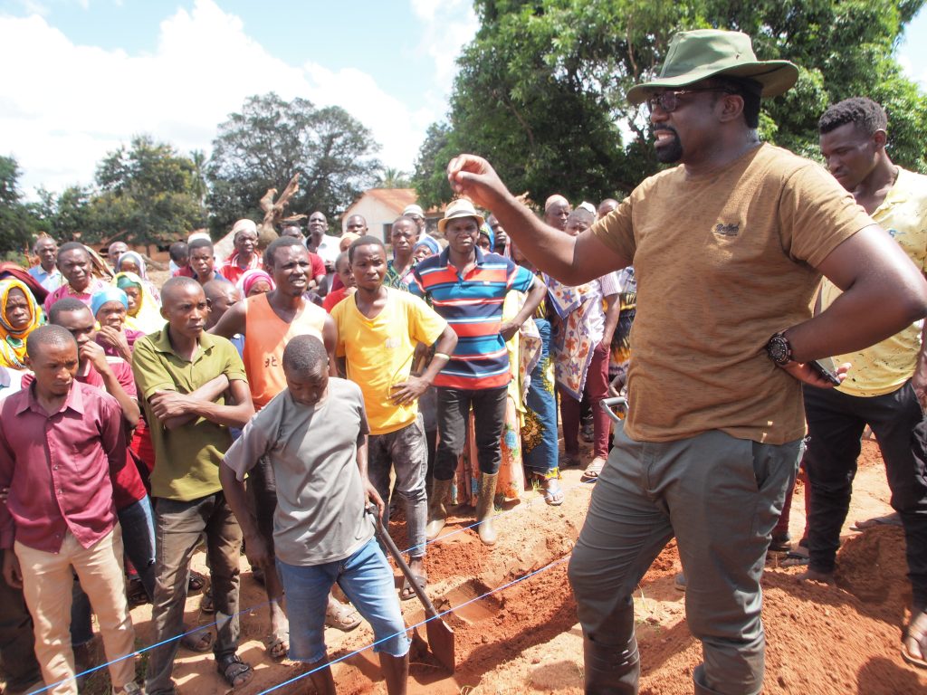 Wakazi wa kijiji cha Ligoma wilayani Tunduru,wakimsikiliza Mkuu wa wilaya hiyo Julius Mtatiro wakati wa maandalizi ya ujenzi wa vyumba vya madarasa kwa ajili ya wanafunzi wa elimu ya awali na msingi katika shule ya msingi Ligoma.