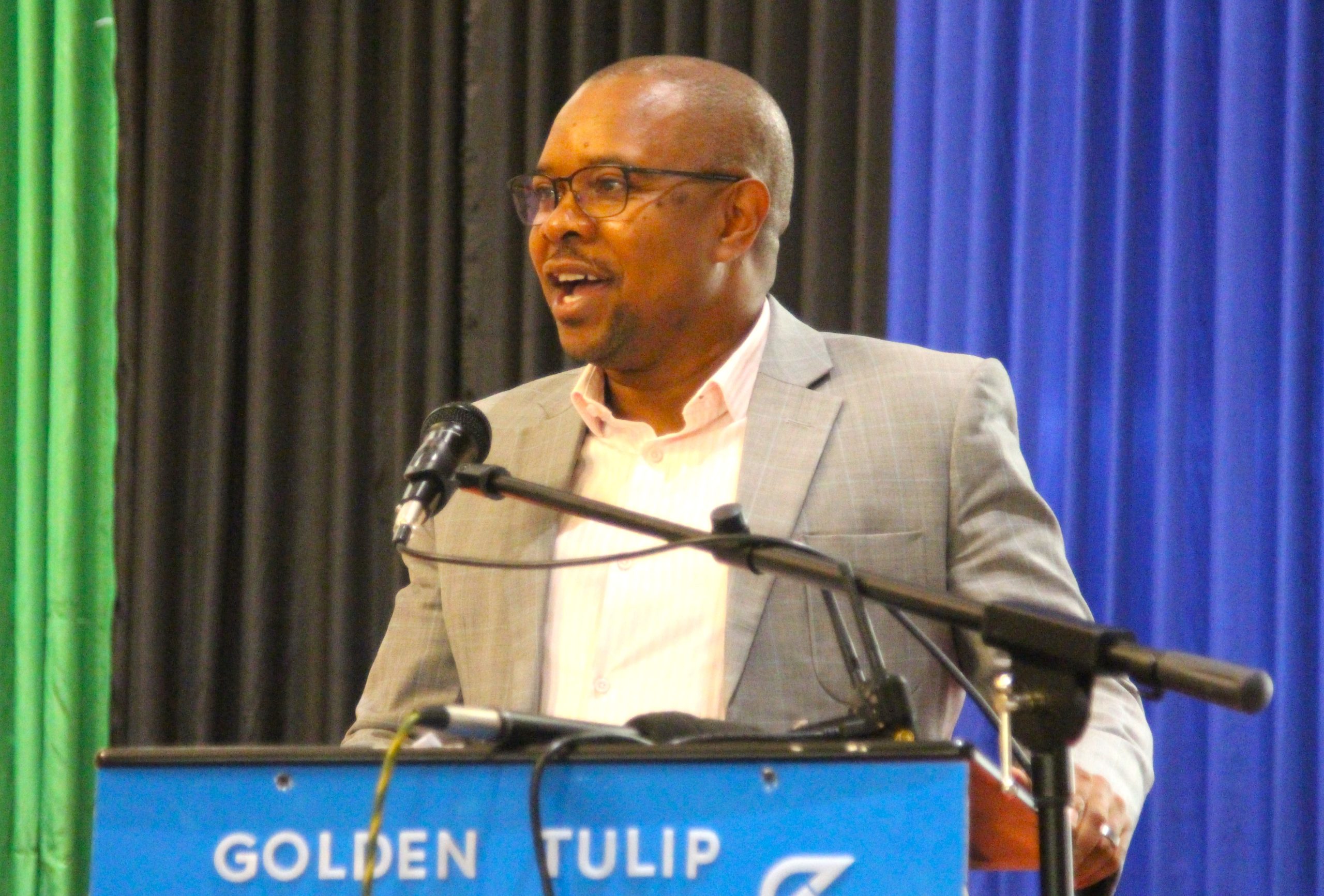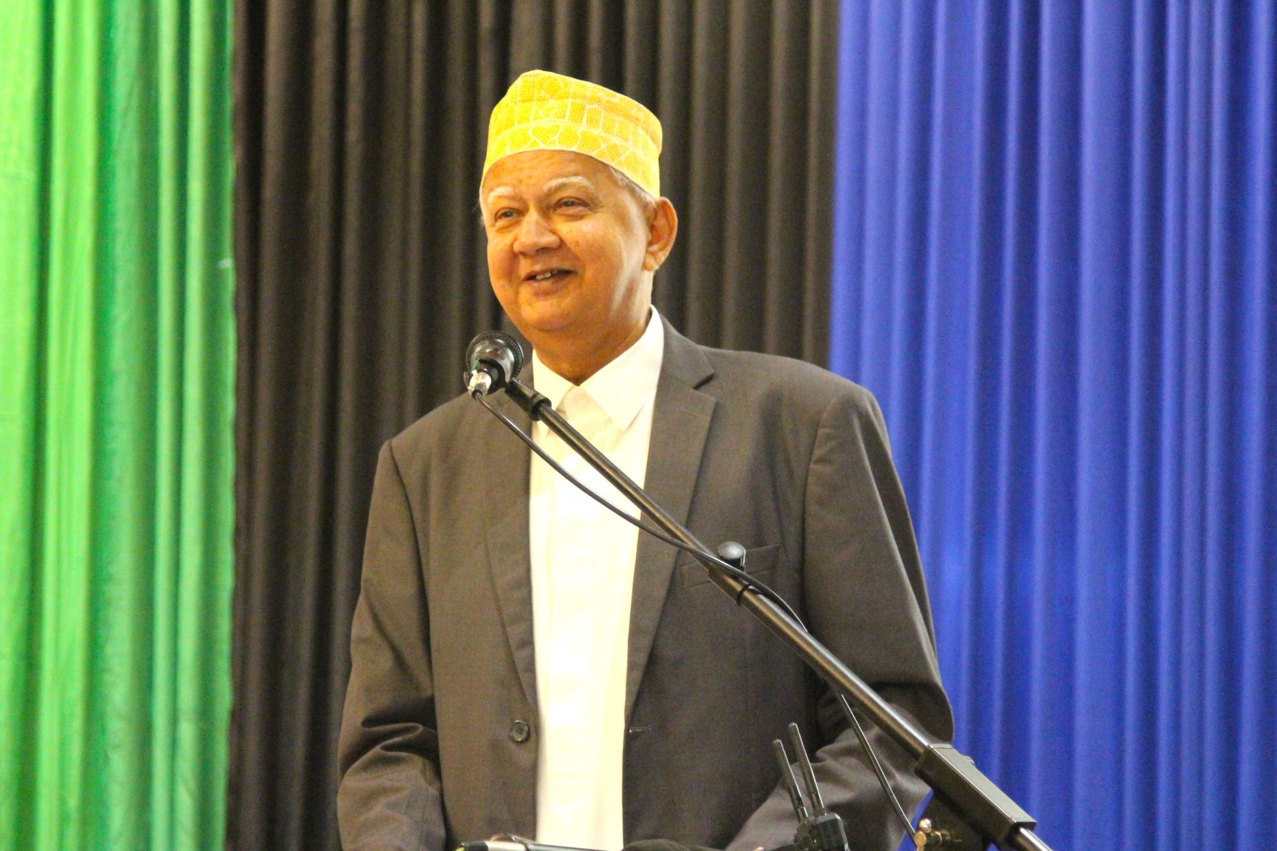 Waziri wa Nchi, Afisi ya Rais, Katiba, Sheria, Utumishi na Utawala Bora Zanzibar, Mhe. Haroun Ali Suleiman akizungumza na Watunza Kumbukumbu na Nyaraka Tanzania wakati wa mafunzo maalumu kuhusu Nidhamu, Uadilifu na Utunzaji Siri sehemu za kazi yanayoendelea katika Ukumbi wa Golden Tulip-Zanzibar.