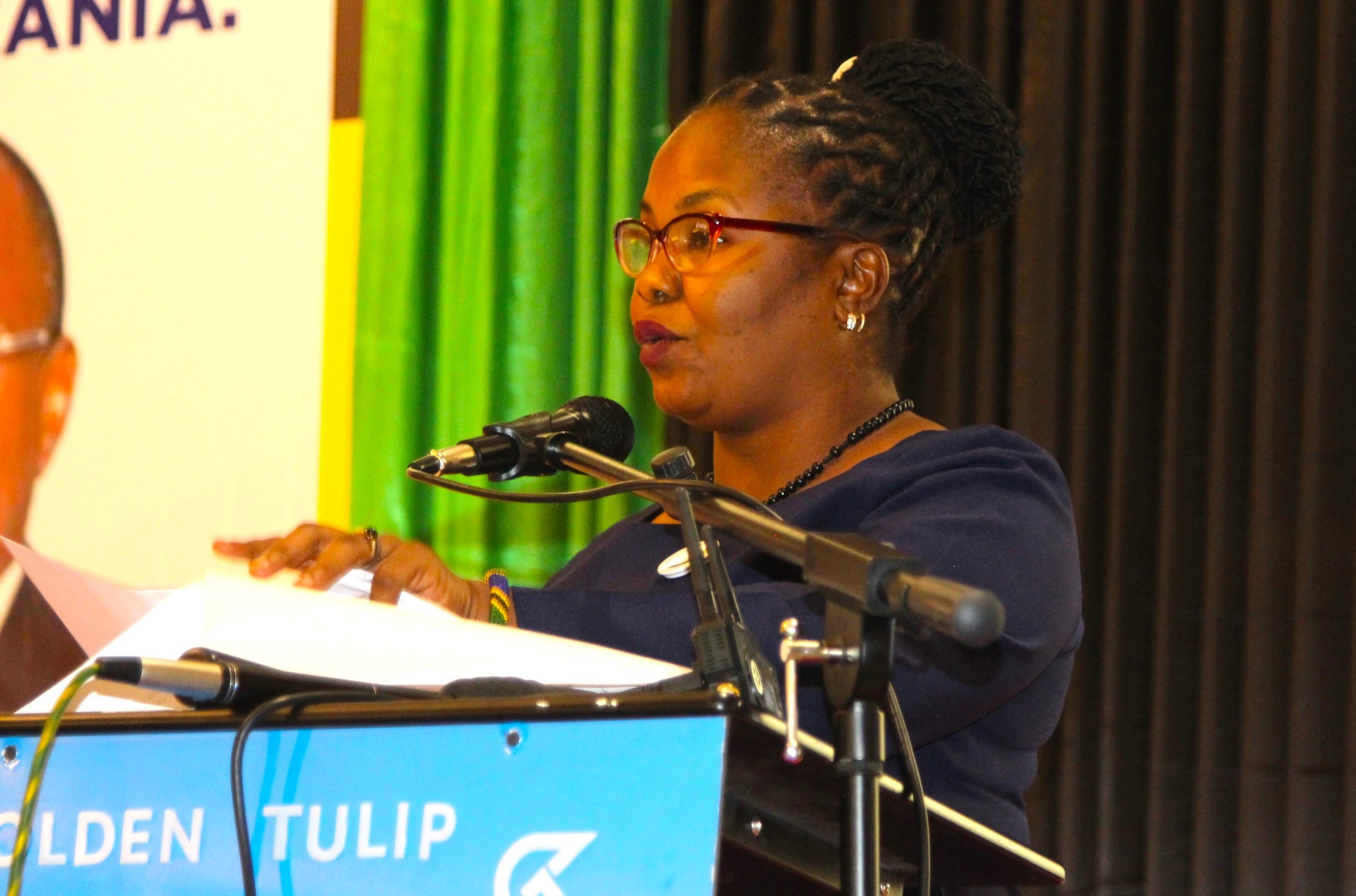 Mwenyekiti wa Chama cha Menejimenti ya Watunza Kumbukumbu na Nyaraka Tanzania, Bi. Devotha George akielezea lengo la mafunzo maalumu kwa Watunza Kumbukumbu na Nyaraka yanayoendelea katika Ukumbi wa Golden Tulip-Zanzibar.
