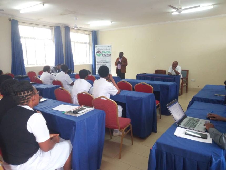 Mkuu wa Kitengo Cha Masoko na mauzo Watumishi Housing Investments ndugu Raphael Mwabuponde akitoa elimu kuhusu uwekezaji wa pamoja kwenye mfuko wa faida(Faida Fund) kwa wafanyakazi wa Hospitali ya Rufaa ya mkoa Sekou-Toure (Mwanza) jana.