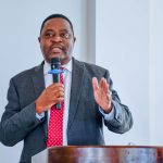 Dkt. Simon Kangwe kutoka Kituo Cha Dar es Salaam Taasisi ya Utafiti wa Uvuvi Tanzania (TAFIRI) akitoa matokeo ya utafiti katika sekta Uvuvi kuhusu mchango wa Sayansi, Teknolojia na Ubunifu.