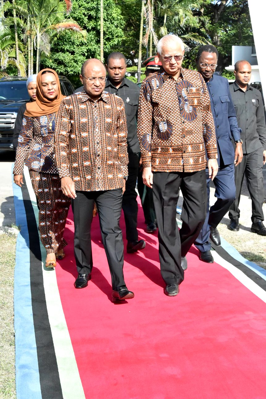 Rais wa Zanzibar na Mwenyekiti wa Baraza la Mapinduzi Dk.Hussein Ali Mwinyi akifuatana na Waziri wa Nchi Ofisi ya Rais Utumishi na Utawala Bora Mhe.Haroun Ali Suleiman alipowasili katika viwanja vya Ukumbi wa Idrisa Abdulwakil Kikwajuni Jijini Zanzibar leo katika kilele cha Maadhimisho ya Wiki ya Utumishi wa Umma Zanzibar,(kushoto) Mke wa Rais Mhe.Mama Mariam Mwinyi