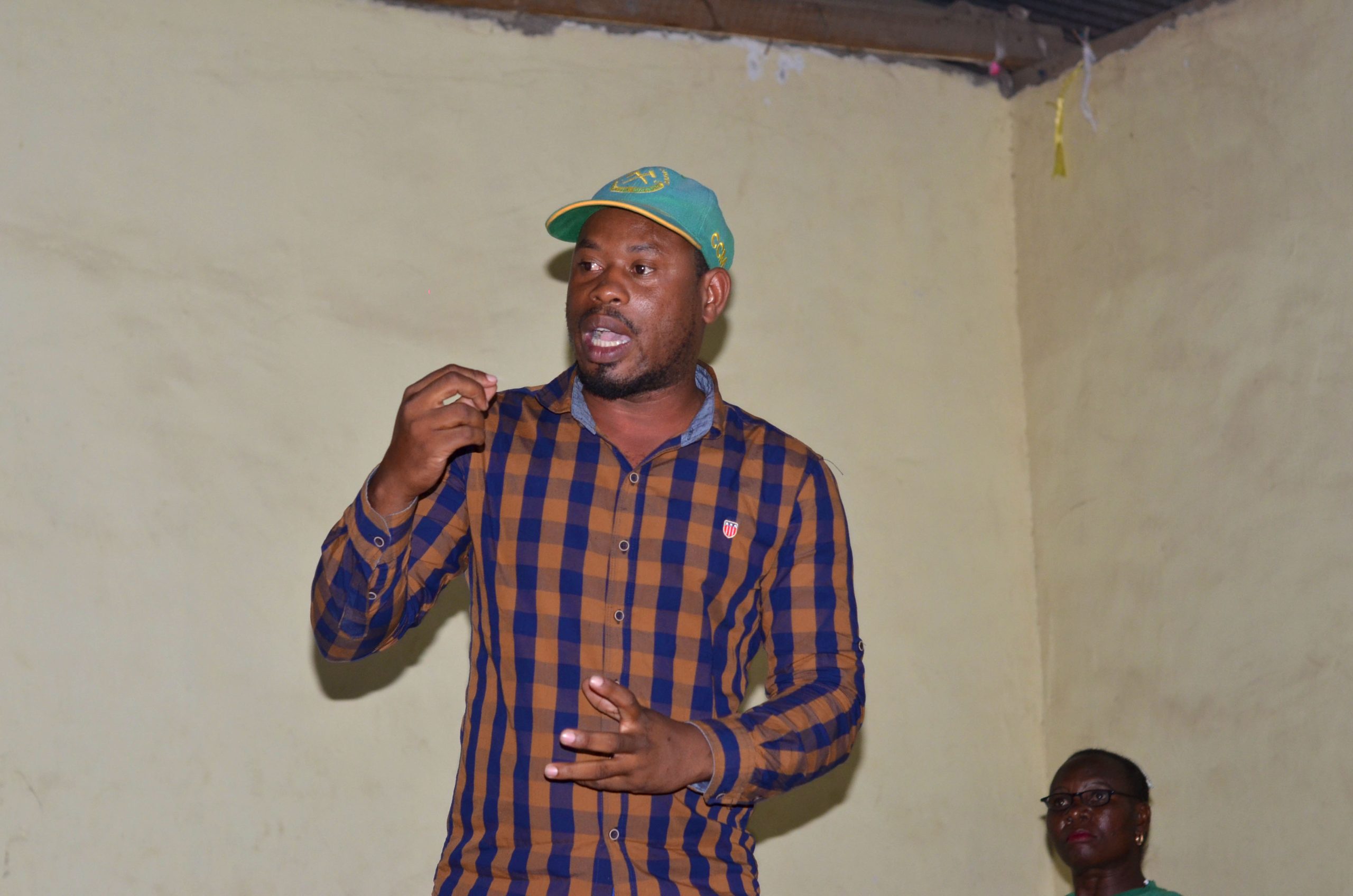 Katibu wa Jumuiya ya Wazazi CCM Kata ya Kitunda Bw. Frank Kanyenye akizungumza na wanachama wa Jumuiya ya Wazazi CCM katika Kata hiyo.